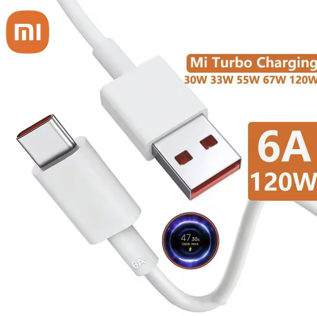 Кабель швидкої зарядки Xiaomi 120W 90W 67W 55W 33W Mi Turbo Charge USB Type-C 6A для Xiaomi Redmi Poco 1 метр