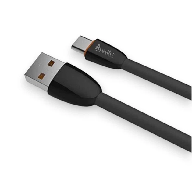 Кабель для зарядки Avantis USB - Type-C, 1м, 3.0А чорний, круглий силіконова оплетка