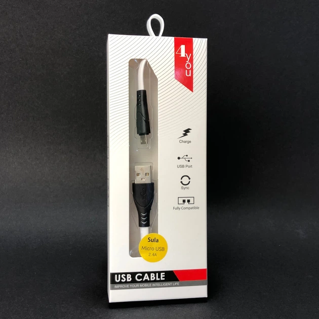 Кабель Usb Micro USB 4you Sula white (2.4A, Silicon)
