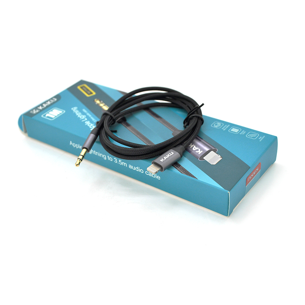 Перехідник KSC-427 Lighting(M) =>Jack 3.5mm(M), 1м, Black / Silver, Box