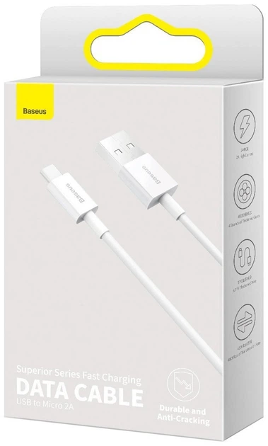 Кабель Baseus Superior Series Fast Charging USB Type-A to Micro USB 2A 2м White (CAMYS-A02)
