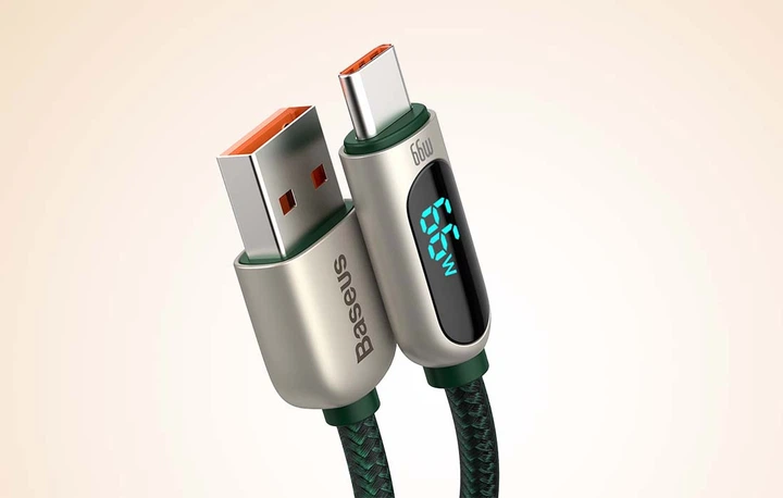 Кабель зарядний Baseus USB Type A - USB Type C Display 66W 1 м Green (CASX020006)