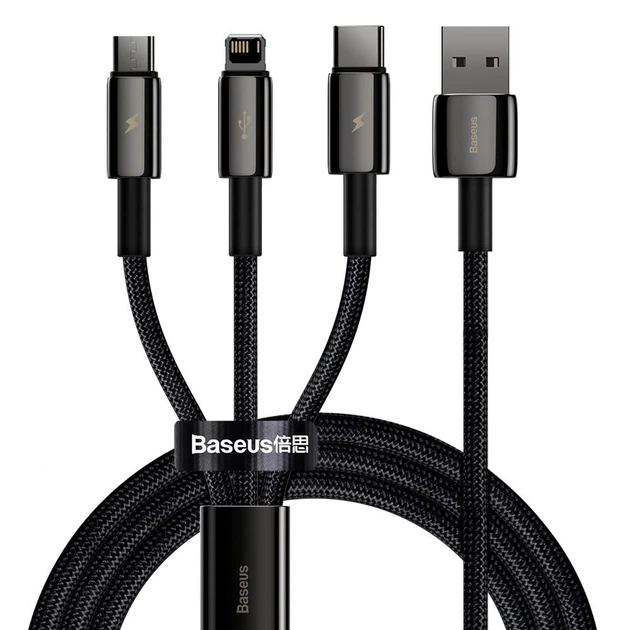 Кабель Baseus Tungsten 3-in-1 USB-A to USB-C/Lightning/Micro-USB 1.5m Black (CAMLTWJ-01)