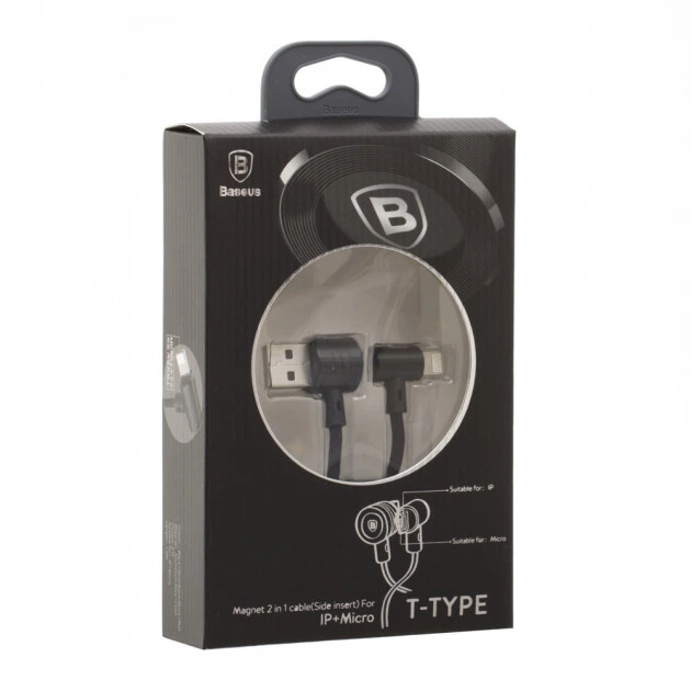 Кабель зарядний BASEUS USB 2.0 — micro USB+ Lightning з магнітним з'єднанням конекторів Black 1.2 м CALTX-A01 (YM0328)