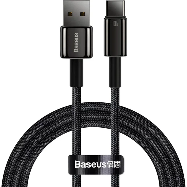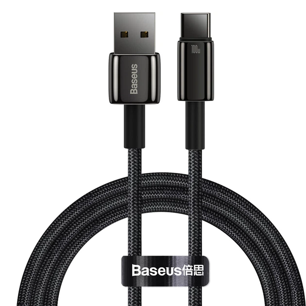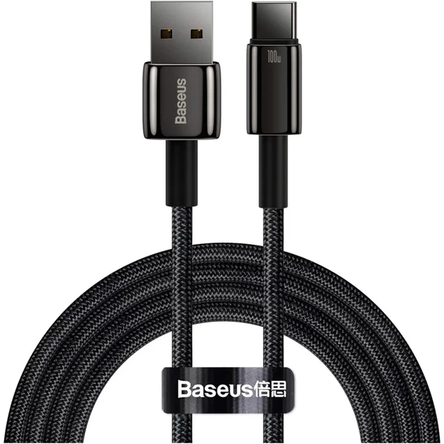Кабель Baseus Tungsten Gold Fast Charging 100W USB-A to USB-C 1m Black (CAWJ000001)