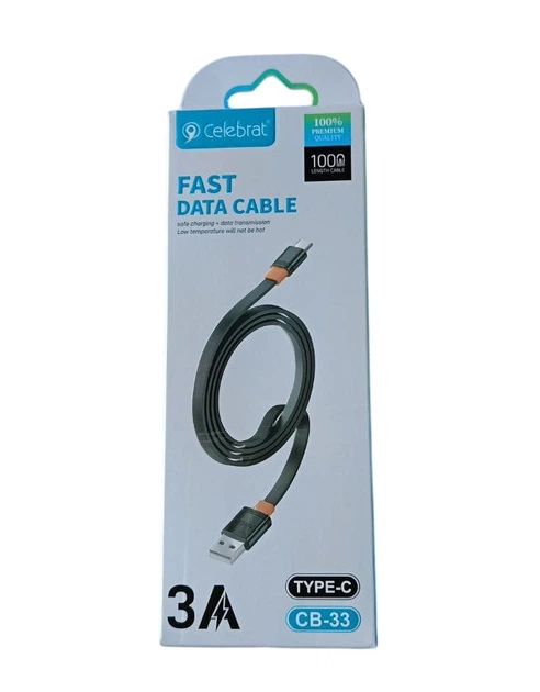 Кабель плоский USB Type-C 3A Celebrat CB-33 довжина 1 метр швидкість зарядки 480 Мбіт/с