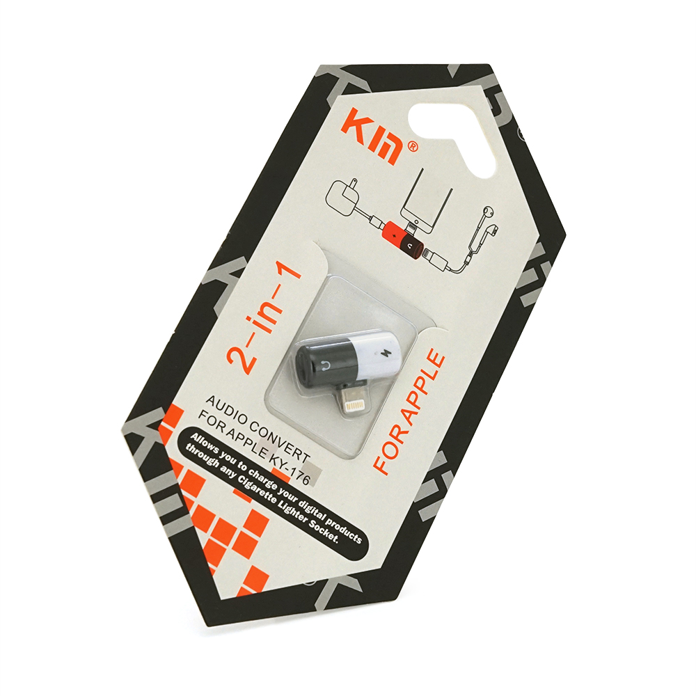 Перехідник KIN KY-176 Lighting(M) => 2/Освітлення (F), білий/чорний, коробка