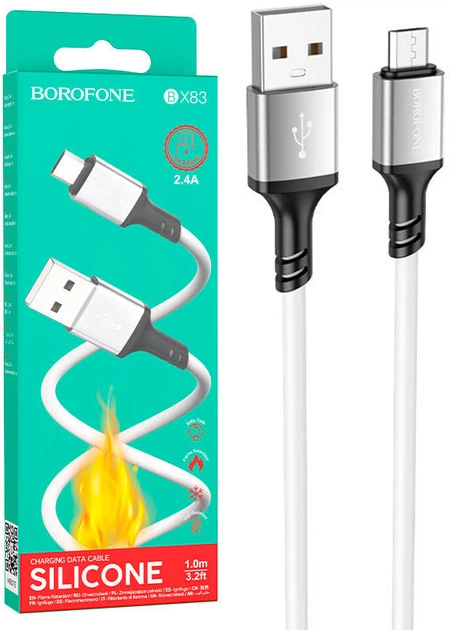 Кабель заряджання BOROFONE BX83 USB для MicroUSB (2.4A) (1M) для Android/Samsung/Xiaomi/Huawei/Meizu Білий