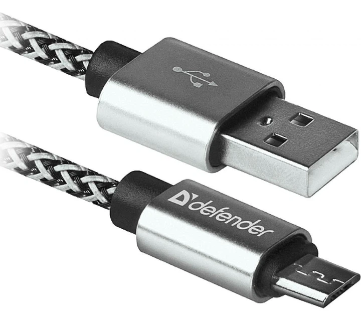 Кабель Defender USB-MicroUSB скорость до 480 Мбит/с длина 1 м Срібний
