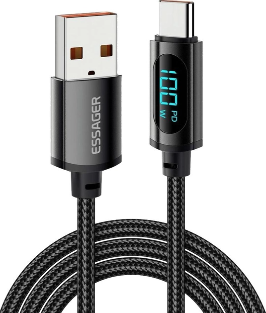 Кабель Essager Enjoy LED Digital Display 7A USB Type-A to USB Type-C 1 м Black (EXCT-XY01-P)