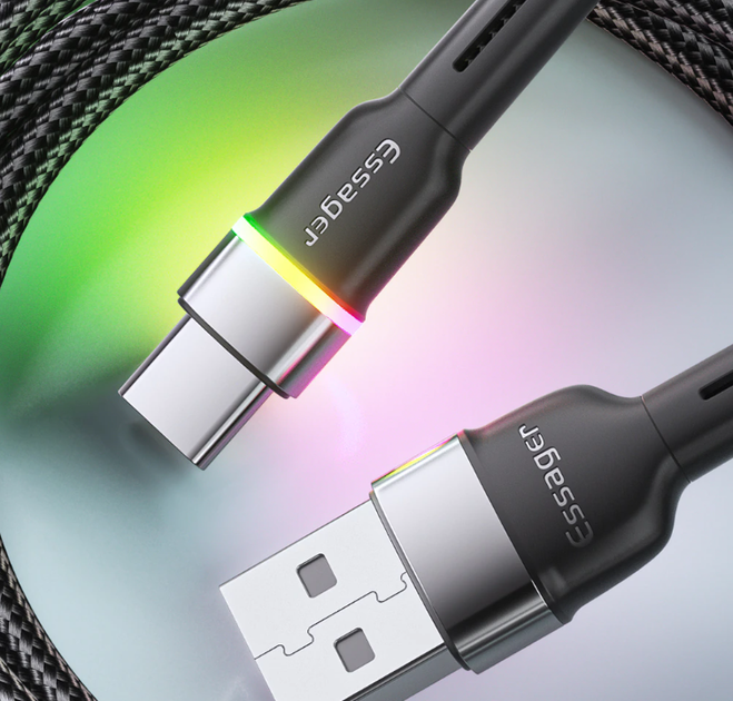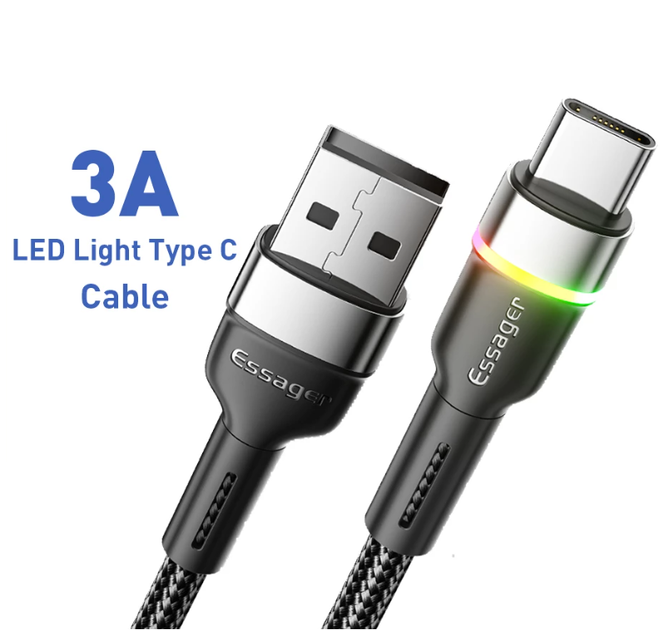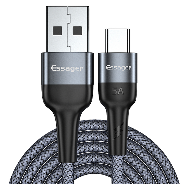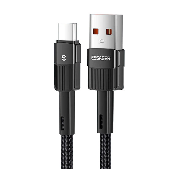 Кабель USB - Type-C Essager 6A 66W, Black - Fast Charge, 200 см (для заряджання та передачі даних)