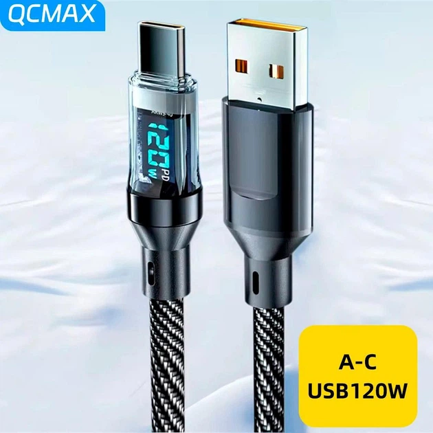 Кабель для заряджання та передачі даних QCMAX LED Digital Display 7A/120W USB Type-A to USB Type-C 1 м 667