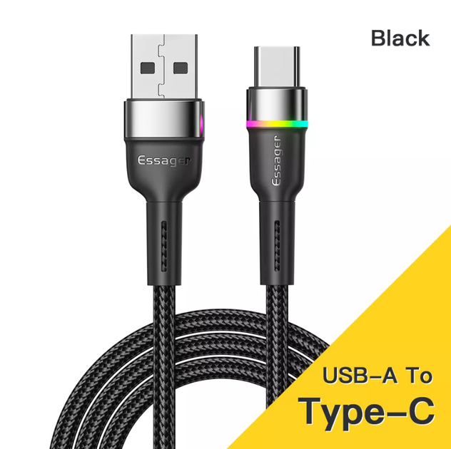 Кабель для заряджання та передачі даних Essager LED Digital Display 7A/100W USB Type-A to USB Type-C 1 м 581 Чорний