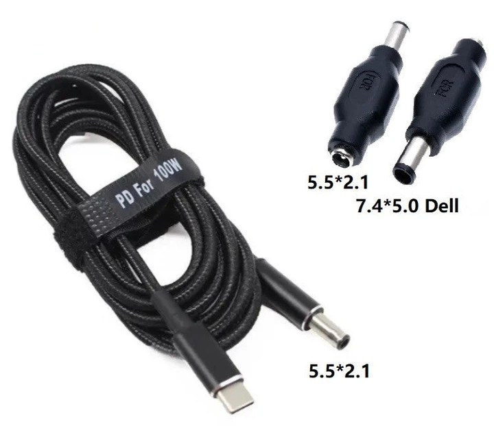 USB Type-C 100W кабель живлення та перехідник DC 7.45.0*0.6 для зарядки ноутбука Dell