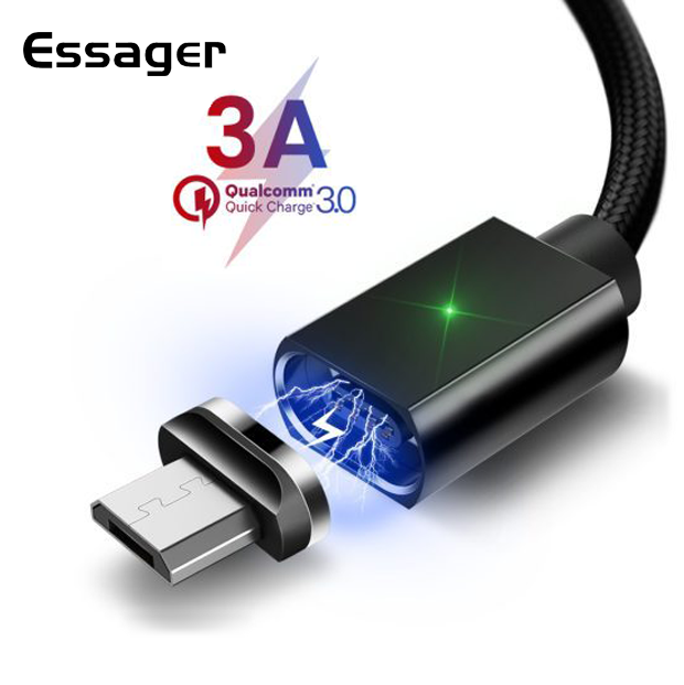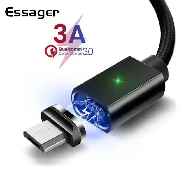 Магнітний кабель чорний ESSAGER для micro USB 2 метра