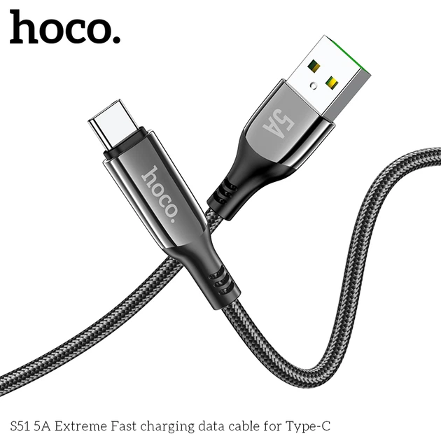 Hoco S51 кабель 5A Extreme швидка зарядка USB Type-C Android 120см, 5A| Чорний