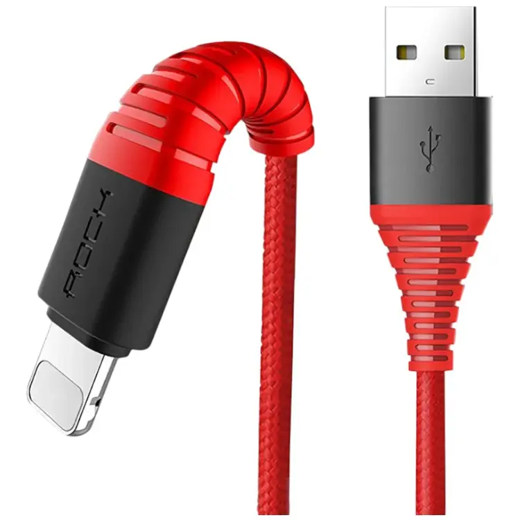 Кабель Rock Hi-Tensile lightning Charge & Sync round cable 1.2M Red