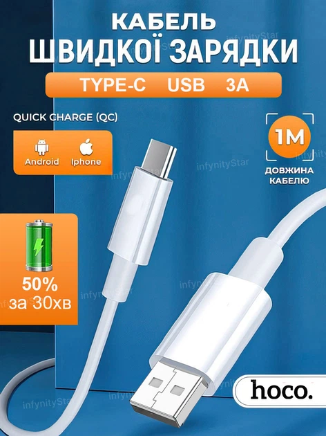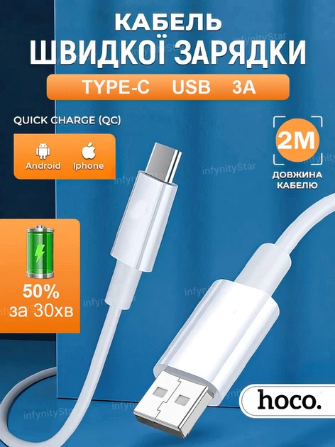 Кабель швидкого заряджання для телефону android iPhone Hoco X88 fast charge usb type c зарядный шнур юсб 3A xiaomi samsung r
