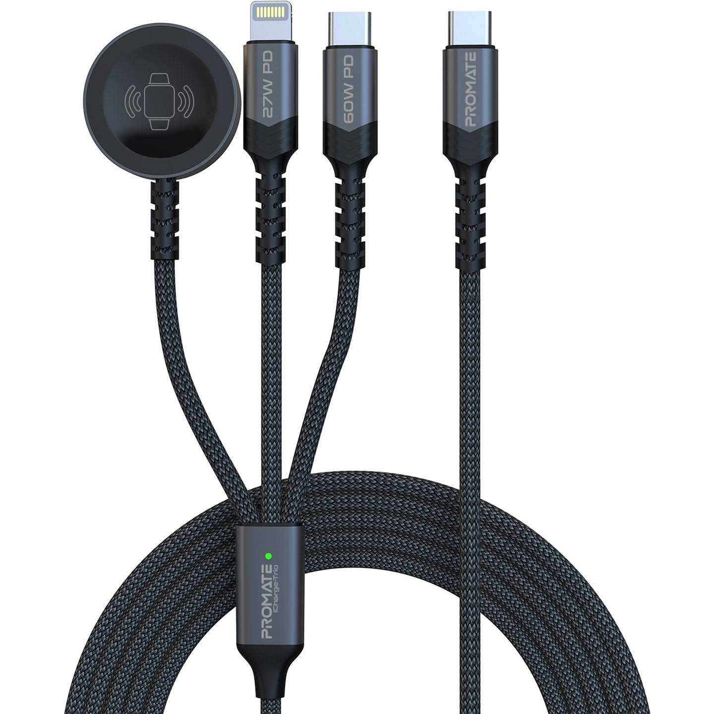 Кабель Promate USB Type-C - USB Type-C (M/M) Lightning 27W 60W Apple MagSafe 1 2.5W, 4A, 1.5 м, Black (icharge-trio.black) i