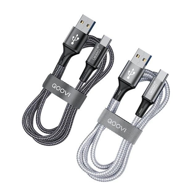 Набір 2шт, Кабель для телефону, USB Type C 3A 1 м плетен нейлоновий з функцією швидкої зарядки