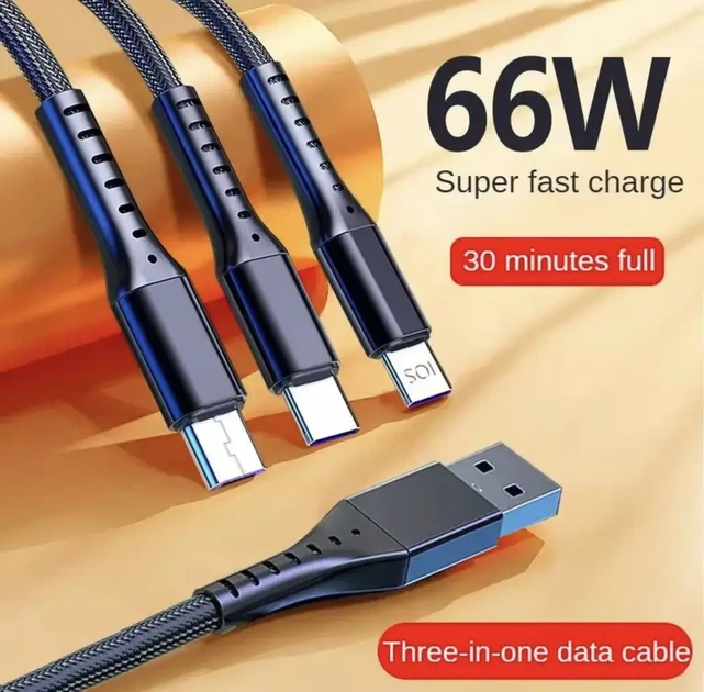 Кабель 3 в 1 USB Type C Fast charge 66 W