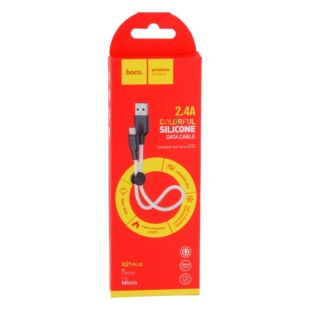 Кабель Hoco X21 Plus Silicone Micro USB для зарядки і передачі даних 2,4 А білий (X21-m)