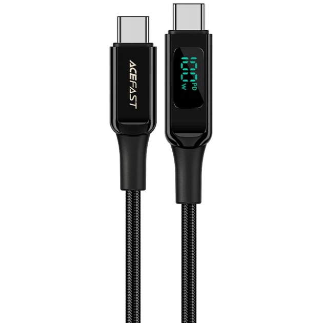 Кабель для заряджання та передачі даних USB Type-C 100W з дисплеєм, 1.2 м, чорний