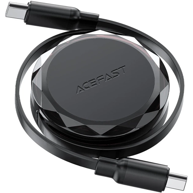 Кабель-рулетка USB Type-C 2.0 для заряджання та передачі даних, 60Вт, 0.8м, чорний
