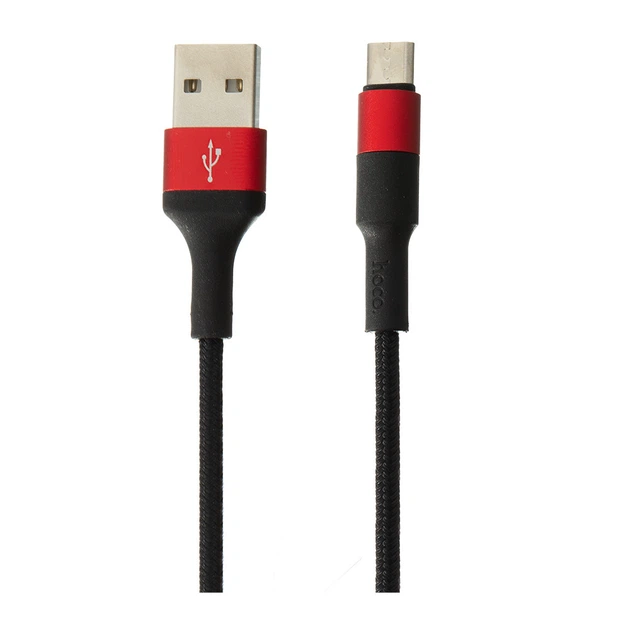 Кабель Hoco Xpress X26 Charging Micro USB чорно-червоний (тканинний оплет, металевий конектор)