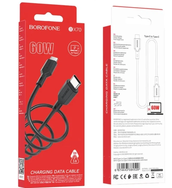 USB кабель BOROFONE 60W Type-C to Type-C X70 137-29196