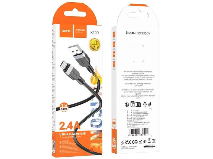 Кабель Hoco microUSB X109 2.4А силіконовий чорний 1м