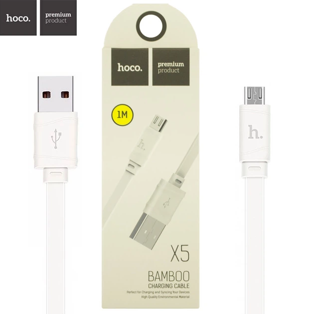 USB кабель Hoco X5 Bamboo micro USB 1m білий