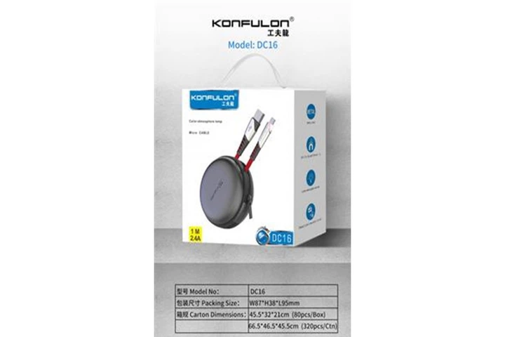 Кабель USB-MicroUSB DC16 Konfulon 1м 2.4А для швидкої зарядки