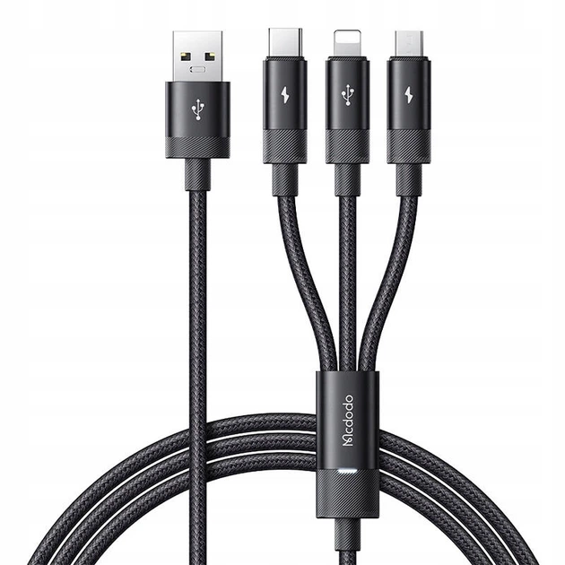 Кабель McDodo 3 in 1 USB-A to USB-C+Lightning+Micro USB Data Cable 1.2M CA-5790 Black