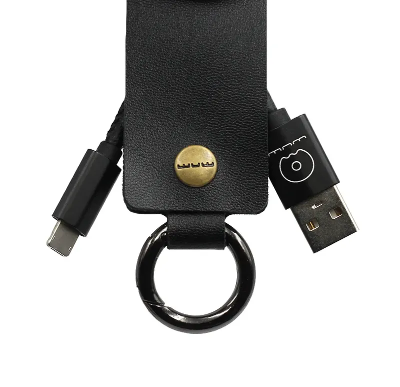 Кабель 0,3м WUW Leather Keychain Lightning + micro USB Black (X22)