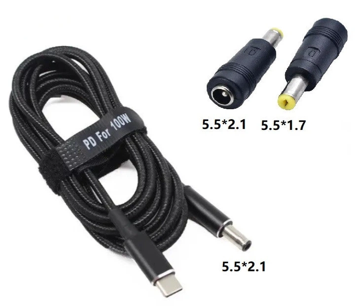 USB Type-C 100W кабель живлення та перехідник DC 5.51.7 для зарядки ноутбука, 78328