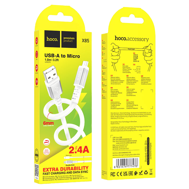 Кабель для телефона MicroUSB Android HOCO X85 Strength 100см |2,4A| Білий