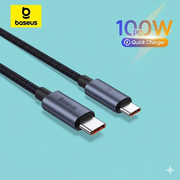 Кабель Baseus 100w 1м Type-C - Type-C PD швидка зарядка для MacBook смартфонів ноутбуків Apple iPhone Samsung