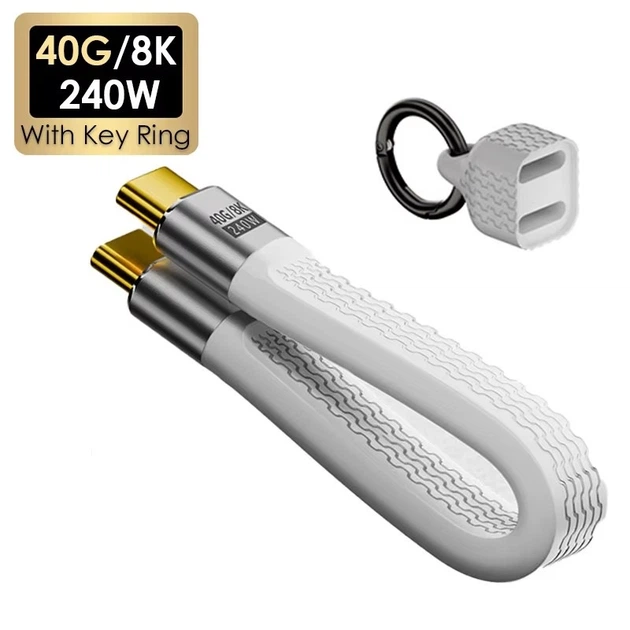 Кабель перехідник Type-C M/M USB 4.0 8K, 40Gbps, PD240W + ковпачок-брелок Білий, 13 см (48912)