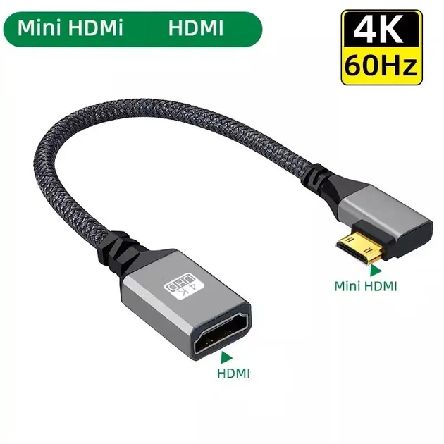 Кабель перехідник Mini HDMI - HDMI (M/F) 4К 2K 60Hz, 20 см (Left) (48649)