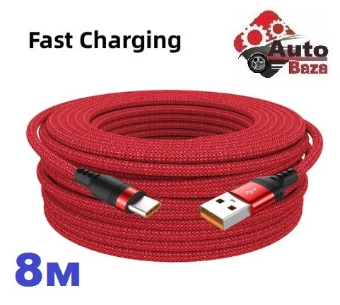 Кабель USB Type-C для USB Type A 6A швидка зарядка QC 8 метрів для Samsung Huawei Xiaomi Switch Sony PS5 Червоний 8м