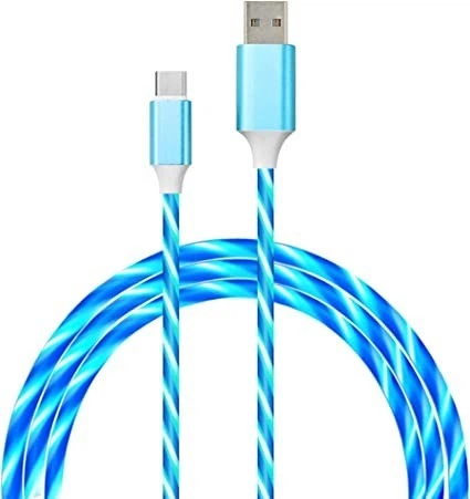 Кабель USB Type-C з неоновим підсвічуванням 2А, 1м - висока якість - синій