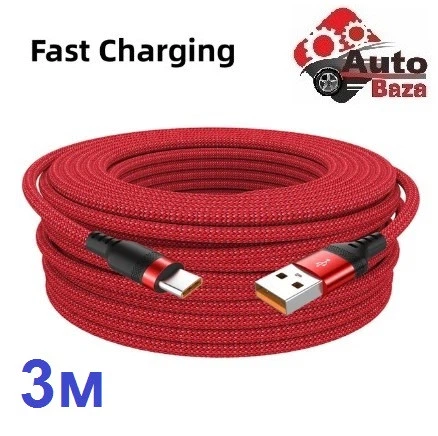 Кабель USB Type-C для USB Type A 6A швидка зарядка QC 3 метра для Samsung Huawei Xiaomi Switch Sony PS5 Червоний 3м Toocki D