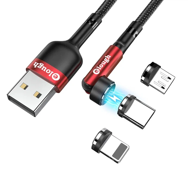 Кабель магнітний з швидкою зарядкою 7 Contact 3 A, 3 в 1 Micro USB/Lightining/Type C, обертання на 54 Elough (2000002882978)