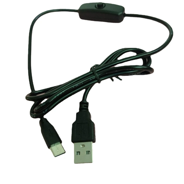 Кабель USB - Type-C тато-тато, 5В 3A, кабель живлення з вимикачем, для LED стрічок та іншого, 1 метр - чорний