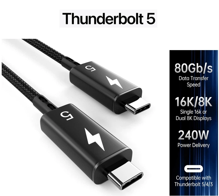 Кабель USB Type-C Thunderbolt 5 16K PD240W 80Gbps, 0.5 м чорний (0524)