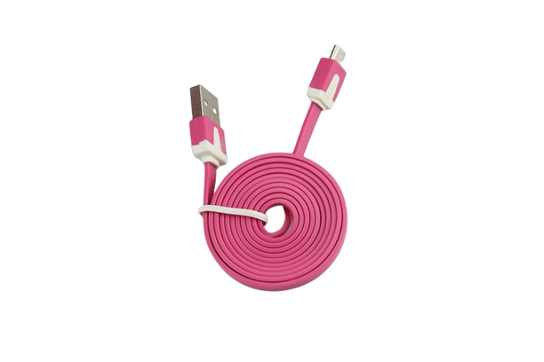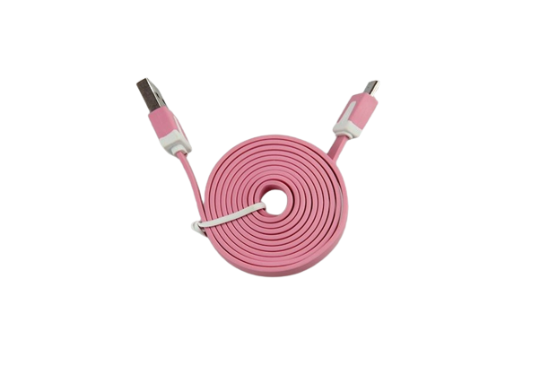 Кабель micro USB гумовий, плоский 2 м рожевий