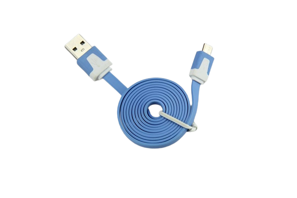 Кабель micro USB гумовий, плоский 2 м блакитний