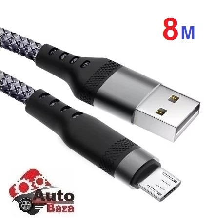 Кабель Micro USB - USB Type A 8 метрів USB 2.0 для заряджання телефону або підключення пристроїв 8m Сірий