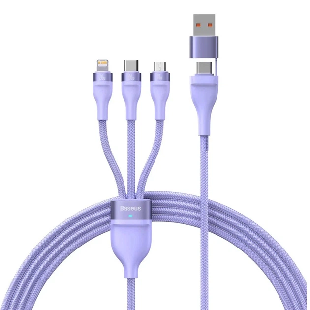 Кабель Baseus Flash Series Two-for-three Charging Cable U+C to M+L+C 100W 1.2m Purple (CASS030105)